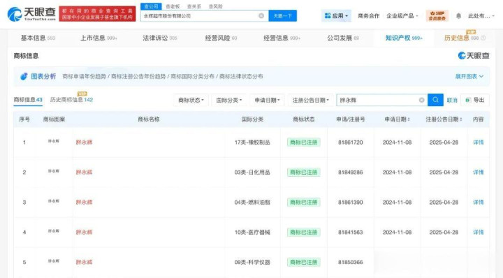 值得一提的是,该公司已申请注册多枚“胖永辉”、“胖小辉”商标,当前多枚“胖永辉”商标已注册成功。